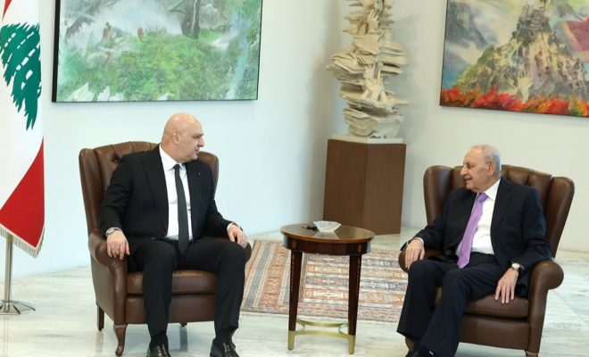 الرئيس عون: ورد الرئيس عون مرحباً بالوفد مؤكداً متابعته اليومية لما يحصل على ارض الجنوب ومعاناة اهله وسكانه. وشدد على ان الدولة تتمسك بعودة الاهالي الى ارضهم ووقف الاعتداءات الاسرائيلية، واطلاق الاسرى وهي تطالب بذلك بشكل دائم لا سيما خلال اجتماعات لجنة “الميكانيزم”، حيث يؤكد السفير سيمون كرم أن هوية ابن الجنوب مرتبطة بأرضه وان لا عودة عن هذا المطلب.
